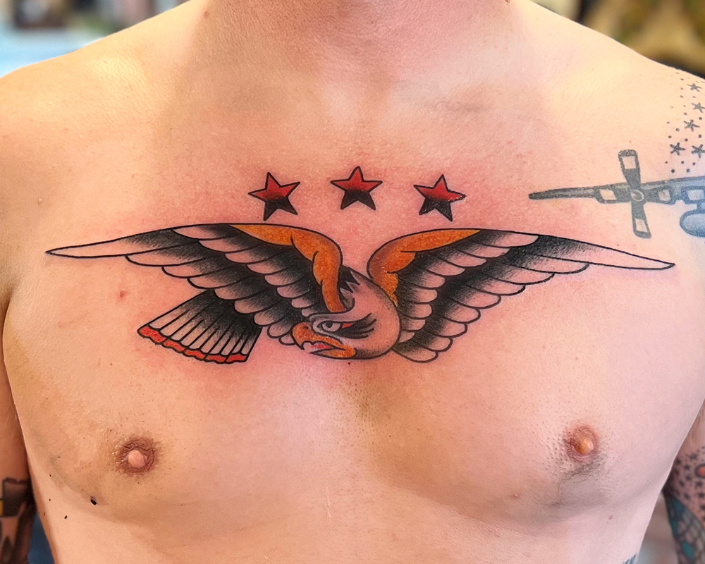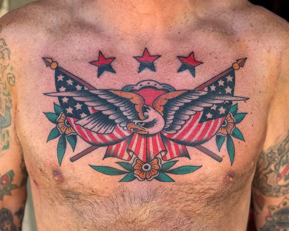 Zach Dole built Brass Eagle Tattoo on a foundation of bold lines, solid color, and respect for tattoo history. Influenced by classic American traditional and the legends who shaped it, his work is designed to age well and stand the test of time. From eagles and panthers to roses and daggers, Zach focuses on strong, clean tattoos that never go out of style. As owner, he’s committed to keeping real-deal tattooing alive in Peoria.